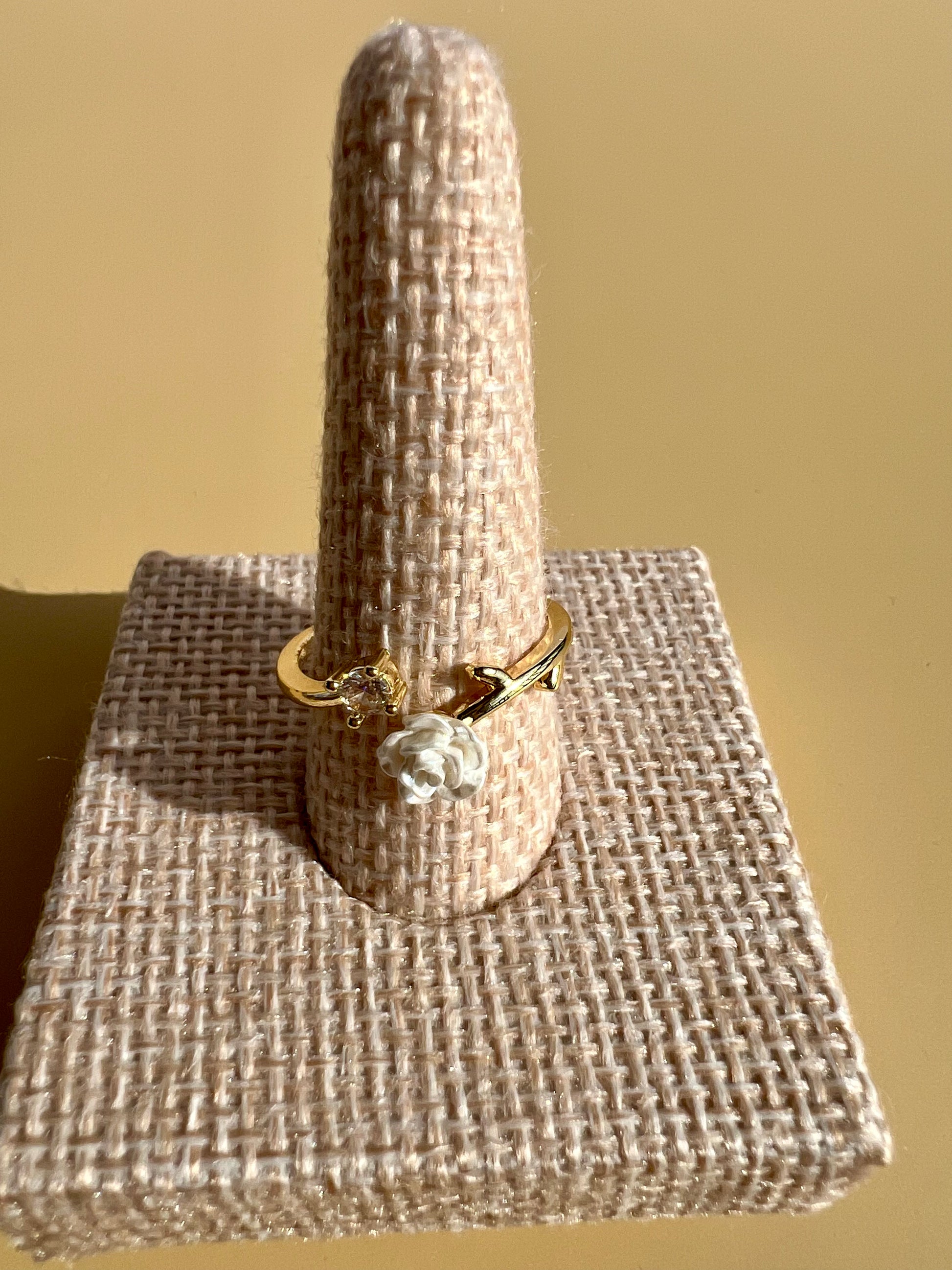 The Flora Blush ring captures the delicate elegance of a white rose, drawing inspiration from Flora, the Roman goddess of flowers. Its soft, floral design embodies fresh beauty and the essence of inner bloom, making it a refined symbol of grace and natural charm. Perfect for those who appreciate subtle sophistication and timeless floral artistry. "Where bloom meets beauty."