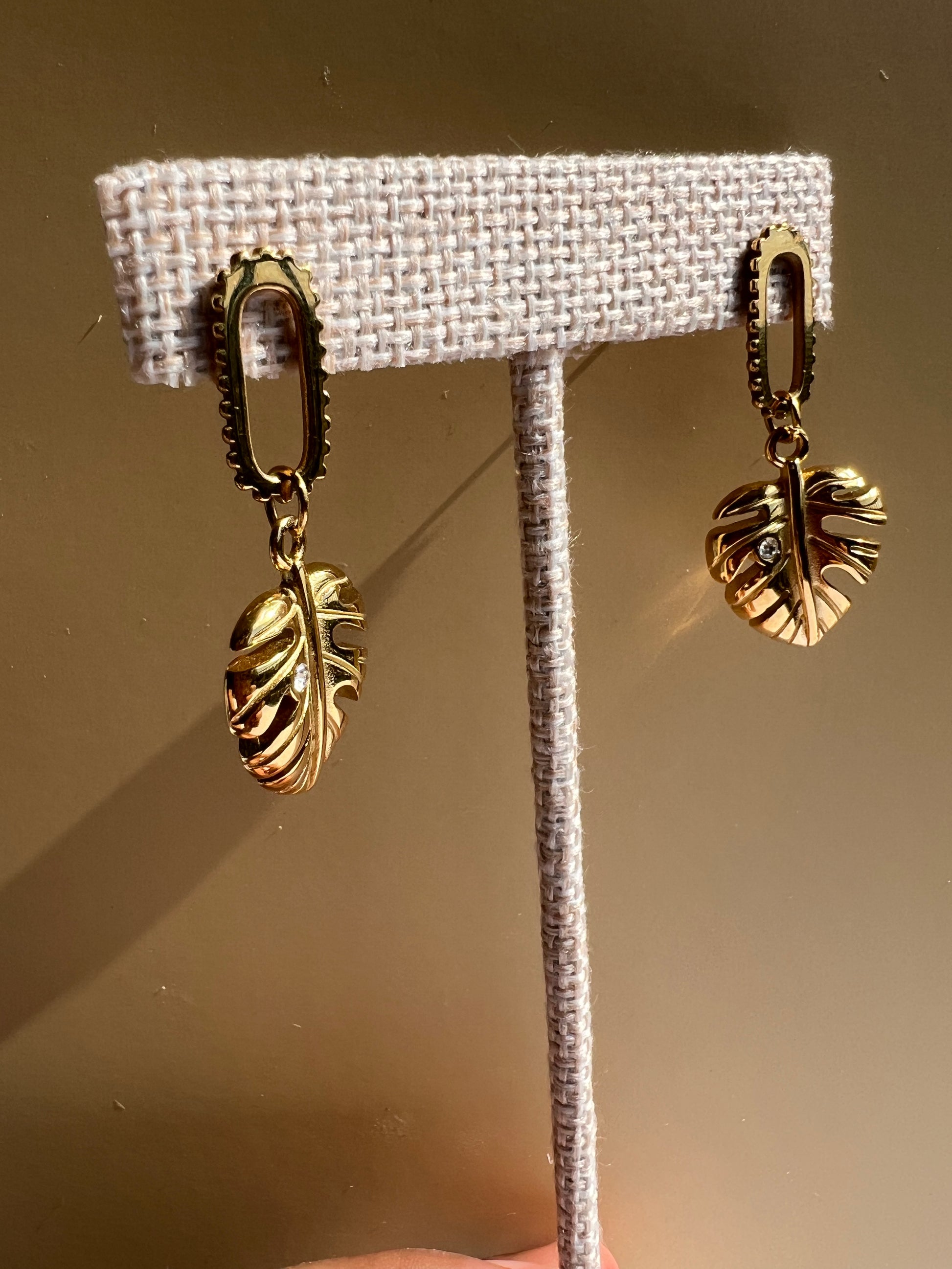Inspired by Gaia, the Greek goddess of earth and nature, Gia's Grove earrings feature a delicate leaf design crafted from durable stainless steel. Their natural, earthy aesthetic evokes a serene connection to the environment, making them a refined accessory for those who appreciate timeless elegance rooted in nature. "Rooted in grace, grown in strength."