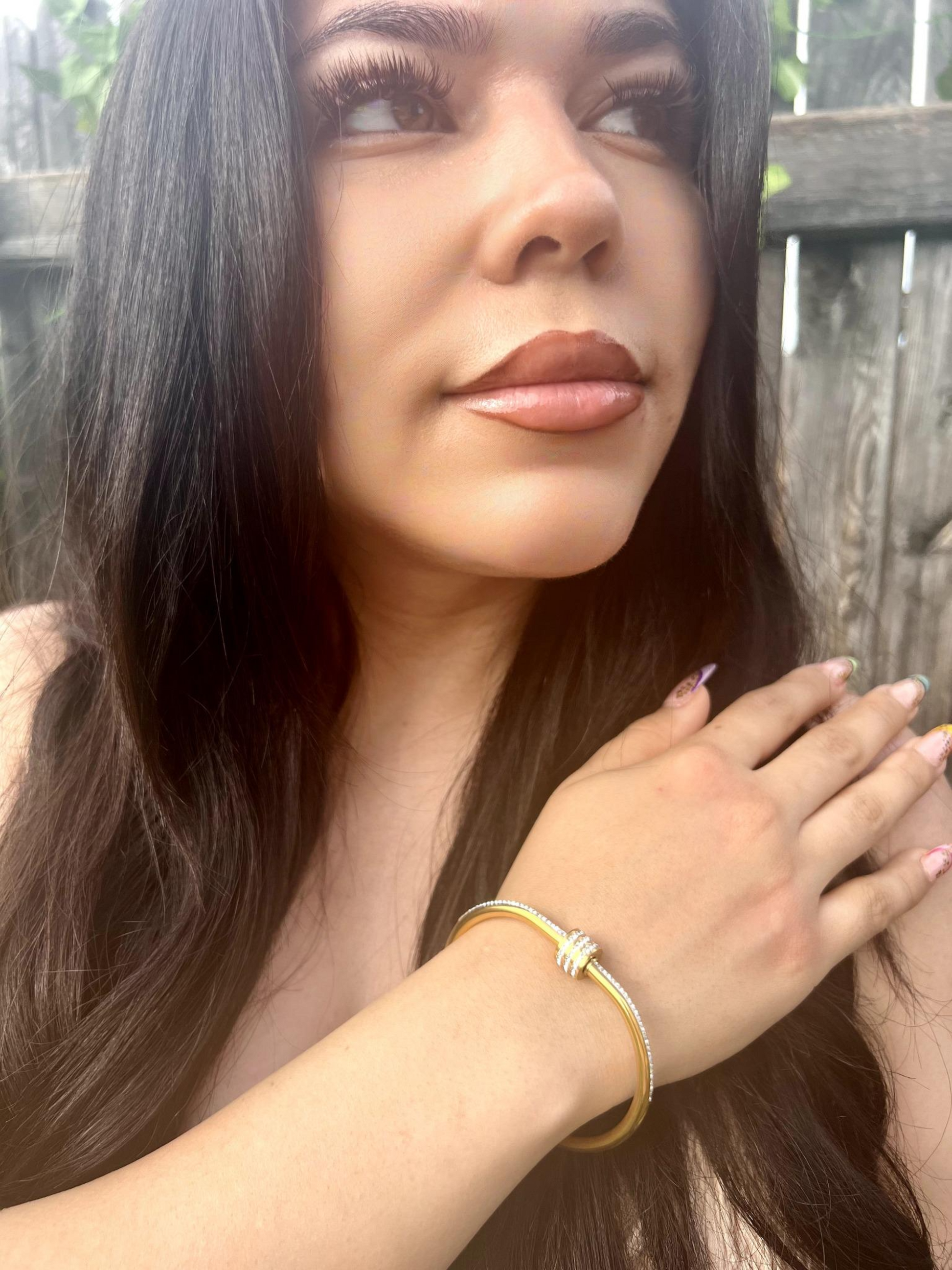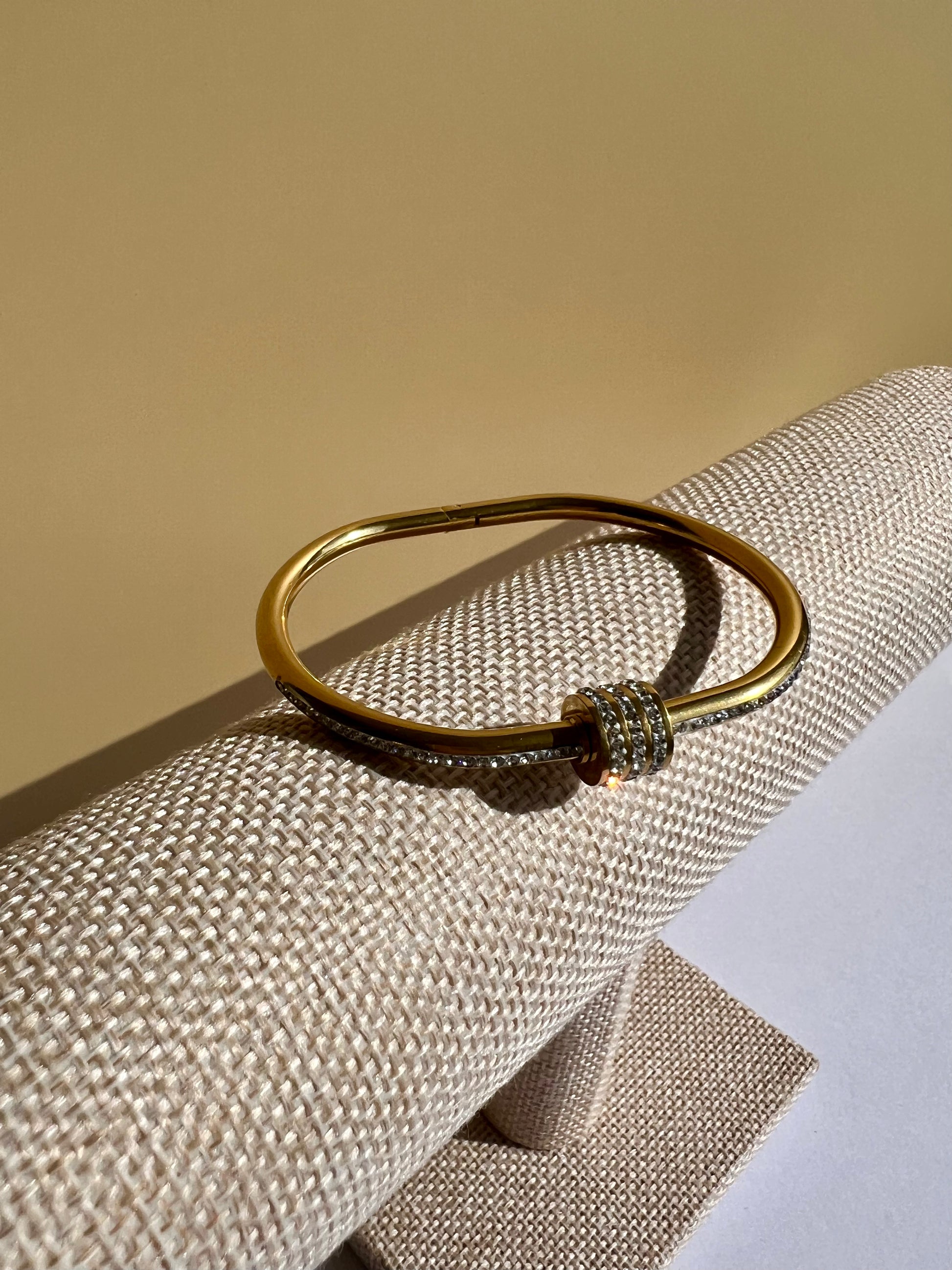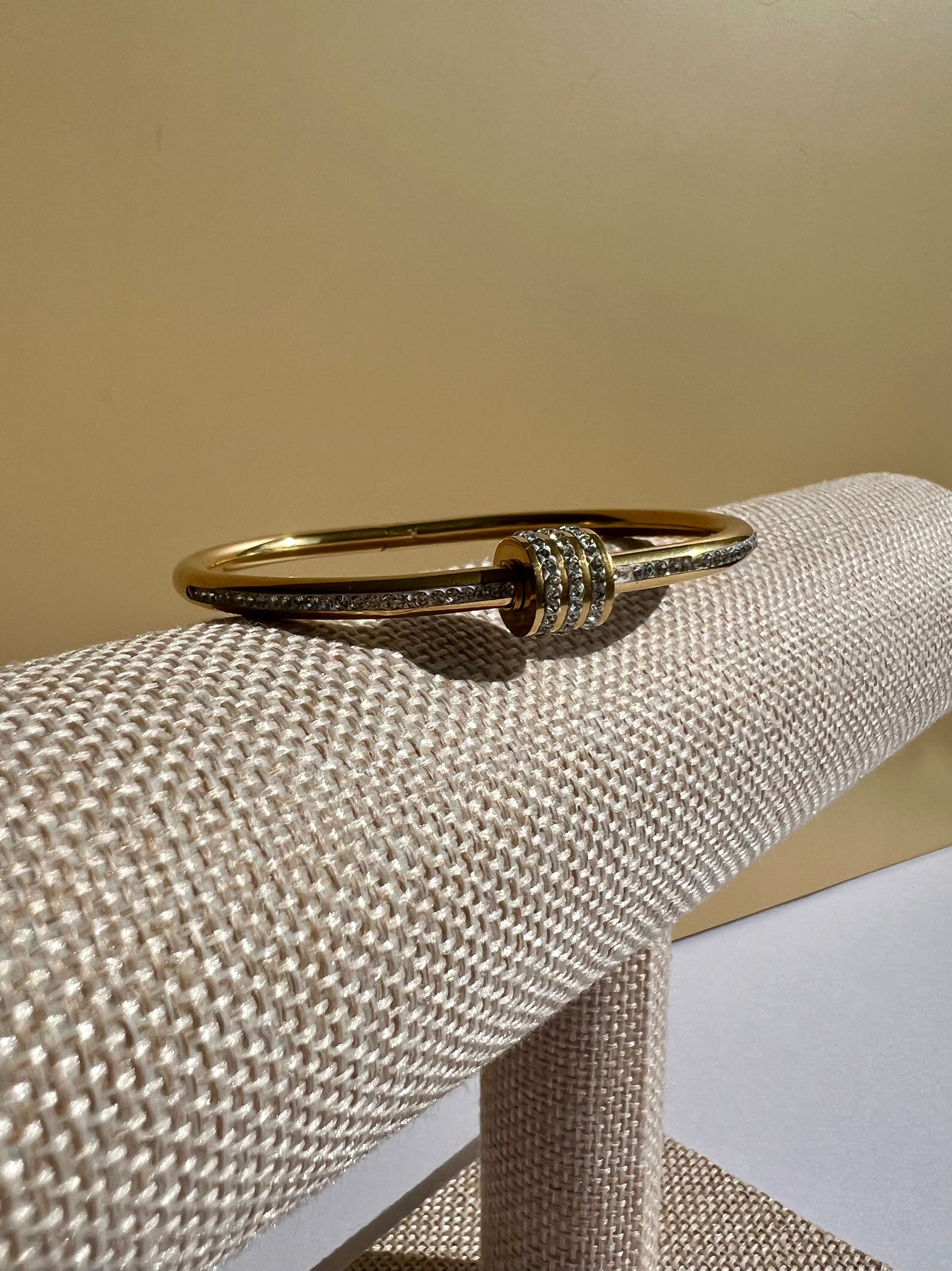 The Iridesa bangle captures the essence of the light goddess Iris with its radiant, rhinestone-filled design. Crafted from durable stainless steel, this sparkling accessory offers lasting shine and eye-catching brilliance. Its elegant shimmer makes it a perfect statement piece for those seeking both sophistication and luminous charm. "Let your light shimmer in silence."
