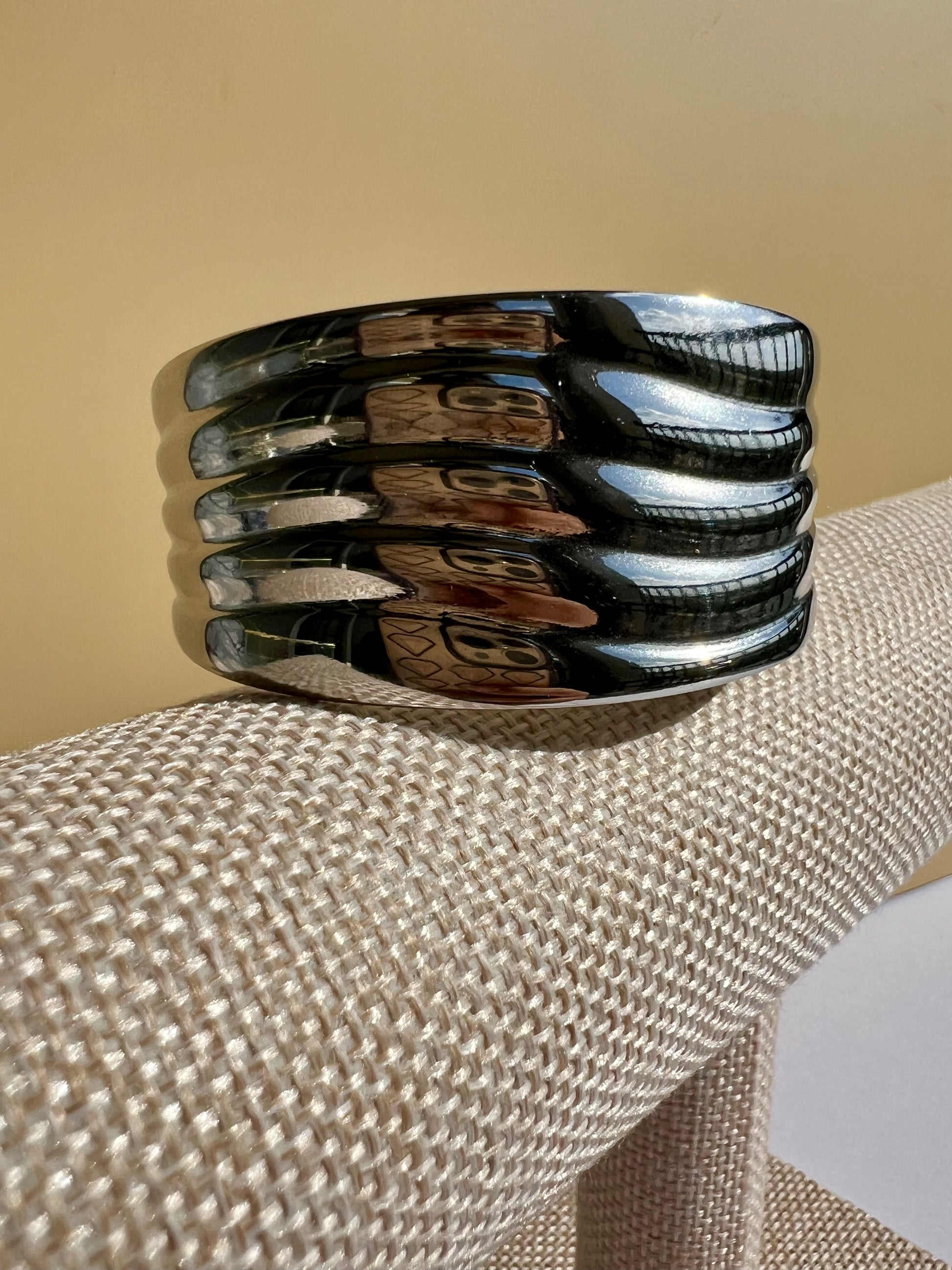 The Luna Wave cuff, crafted from high-quality stainless steel, channels the celestial power of Luna, the Roman moon goddess. Its chunky silver form offers a bold yet refined statement, combining durability with mythological elegance. This piece is designed for those who value expert craftsmanship and timeless celestial inspiration in their jewelry. "Ride the Rhythm of silver light."