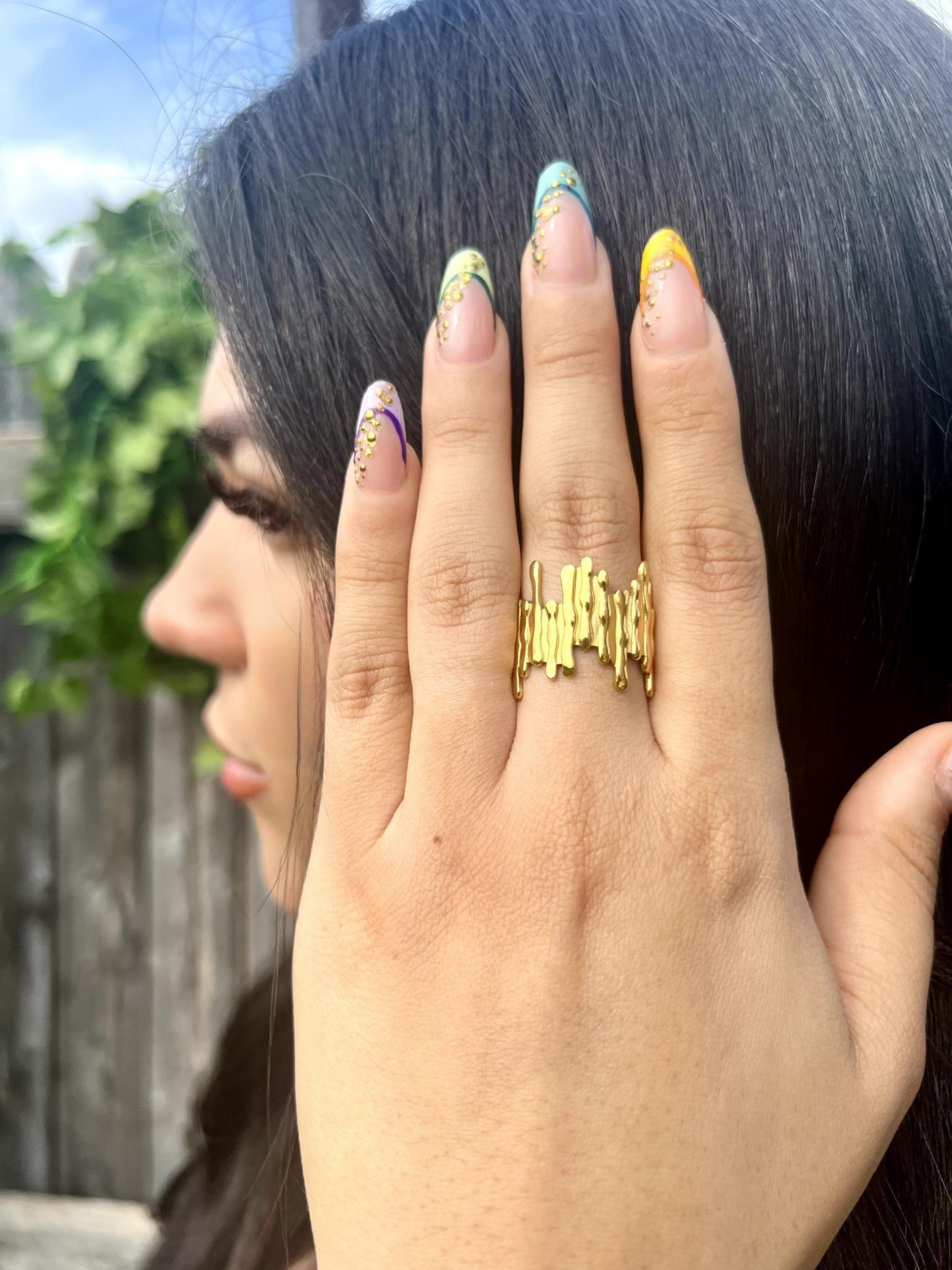The Regina Flame ring features a striking gold spiky crown design. Inspired by the goddess title "Regina", the Latin word for queen. This piece embodies fierceness, royalty, and radiant elegance. Perfect for those who want to make a bold, regal statement with their jewelry. "For the queen who burns soft and strong."