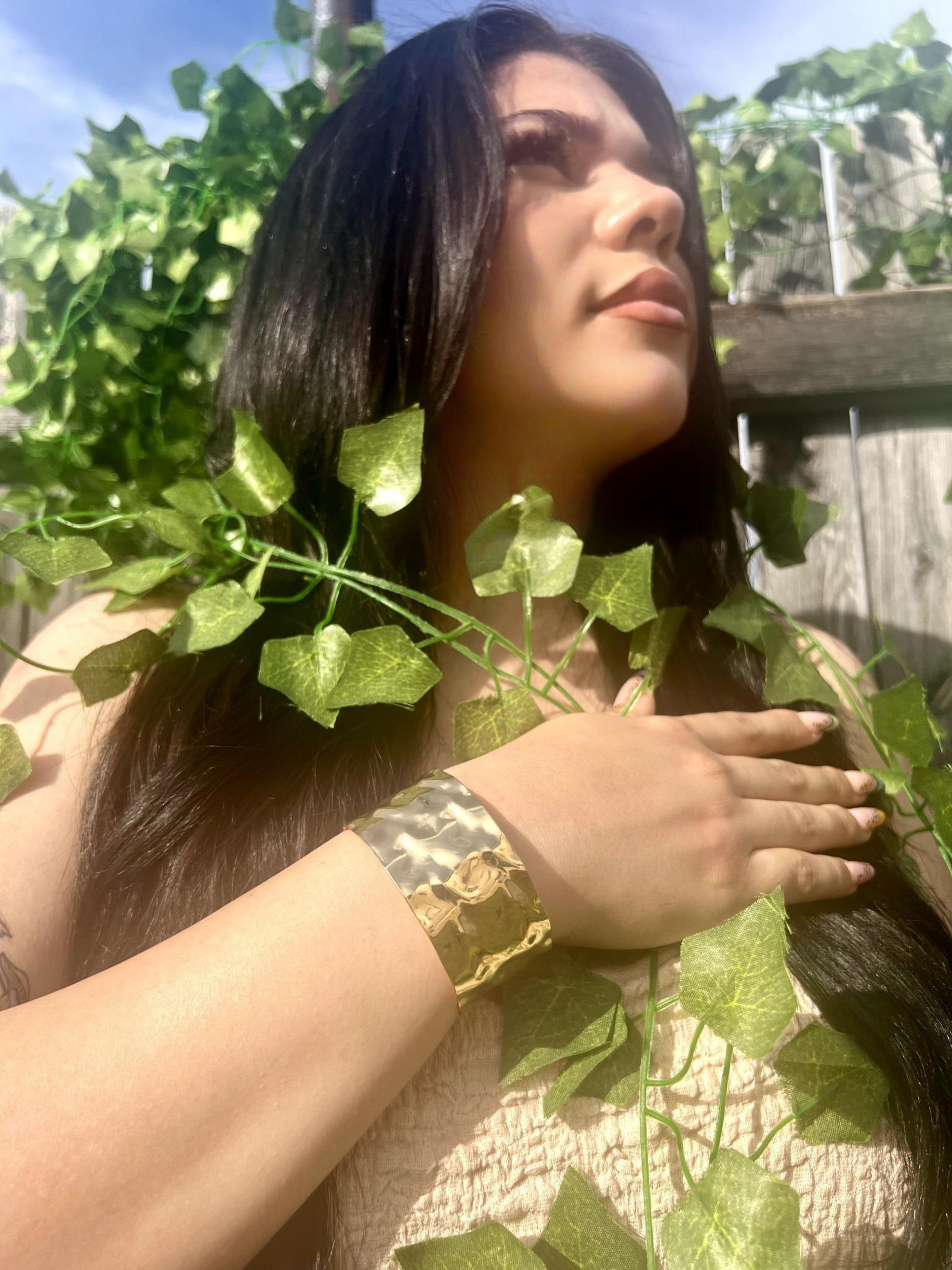 The Rhea Gold cuff is a bold yet simple piece crafted from high-quality stainless steel with a luminous golden finish. Drawing inspiration from Rhea, the Greek Titaness and mother of the gods, this cuff embodies female power and golden strength. Its sleek design offers both durability and timeless elegance, making it a refined symbol of resilience and grace for the modern wearer. "Worn by Queens."