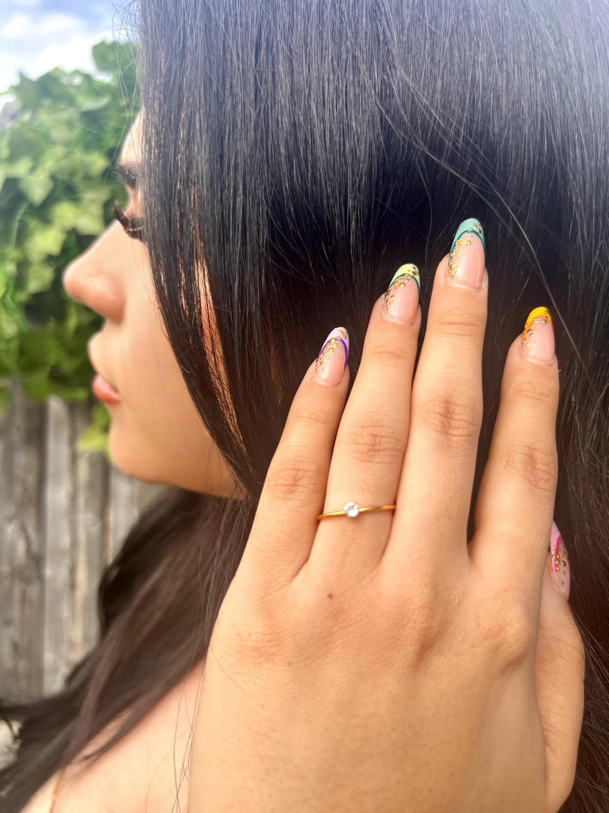 The Selene Light ring captures quiet elegance with its delicate, minimalist design. Featuring a single rhinestone at its center, this dainty band draws inspiration from Selene, the Greek goddess of the moon, embodying soft brilliance and subtle sophistication. Perfect for those who appreciate refined, understated jewelry that reflects timeless grace. "A single star in moonlight."